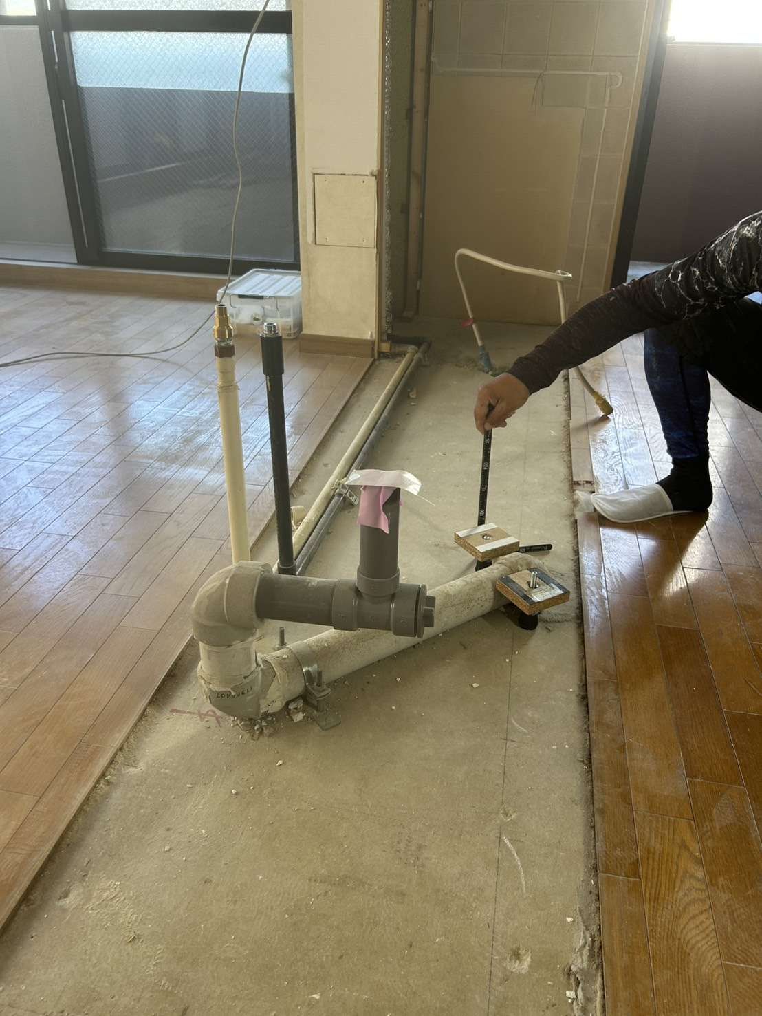 置床の脚の高さについては排水管の高さによって決まりますので、解体後に新規の配管経路と考慮して高さを決めていきます。