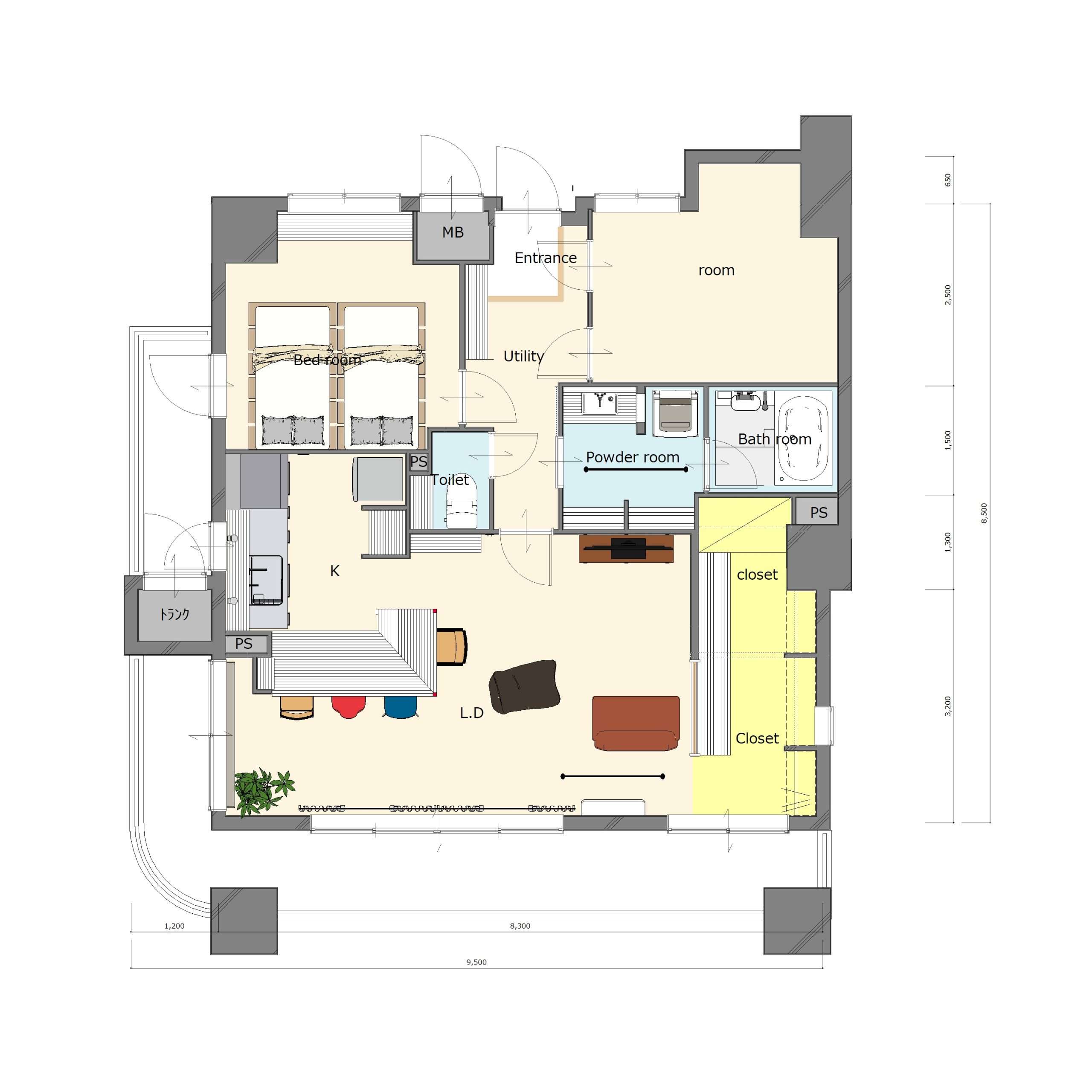 今回は3LDKの間取りを2LDK+ウォークインクローゼットへ間取り変更をしました。