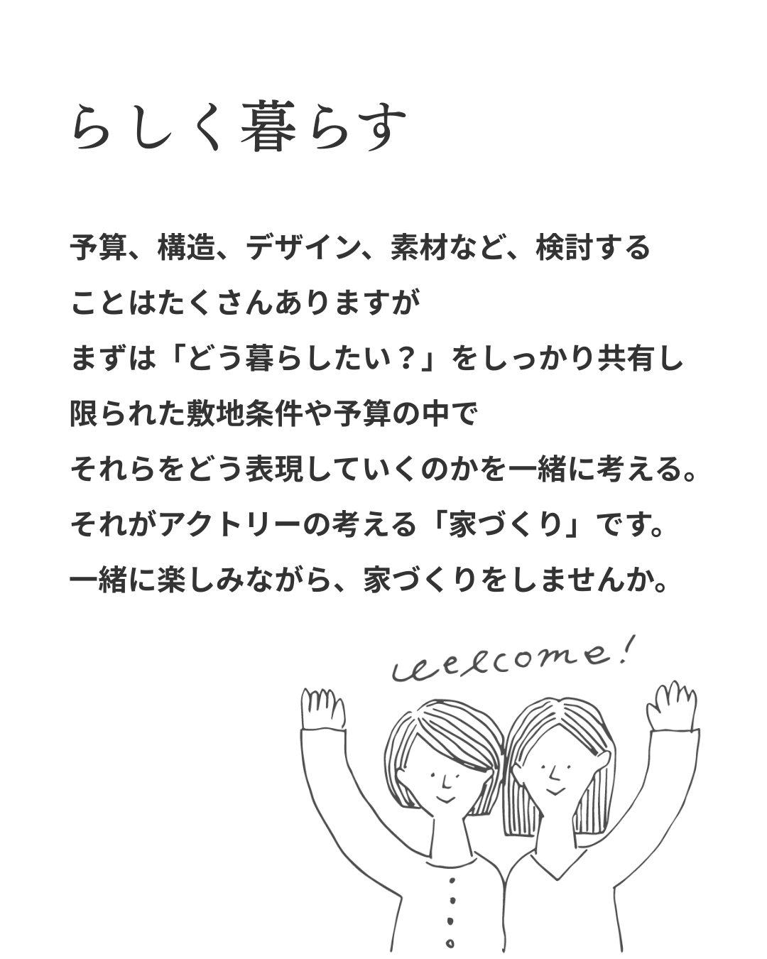 「自分らしく、心地よく暮らすための住まい」を具体的にイメージしていただけます。
