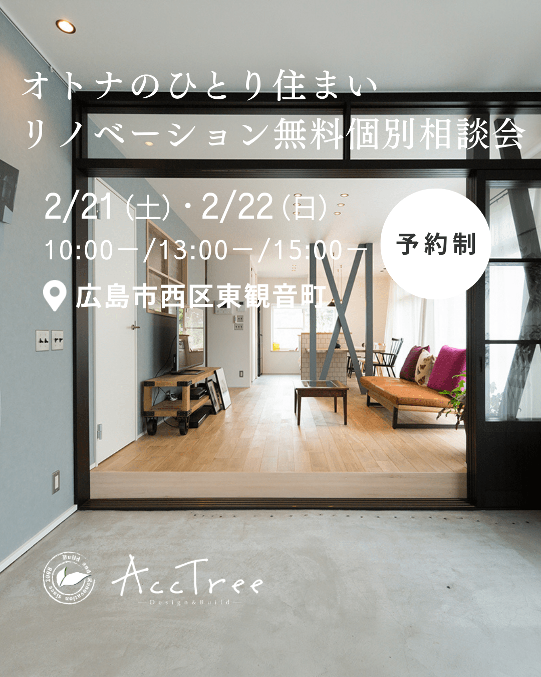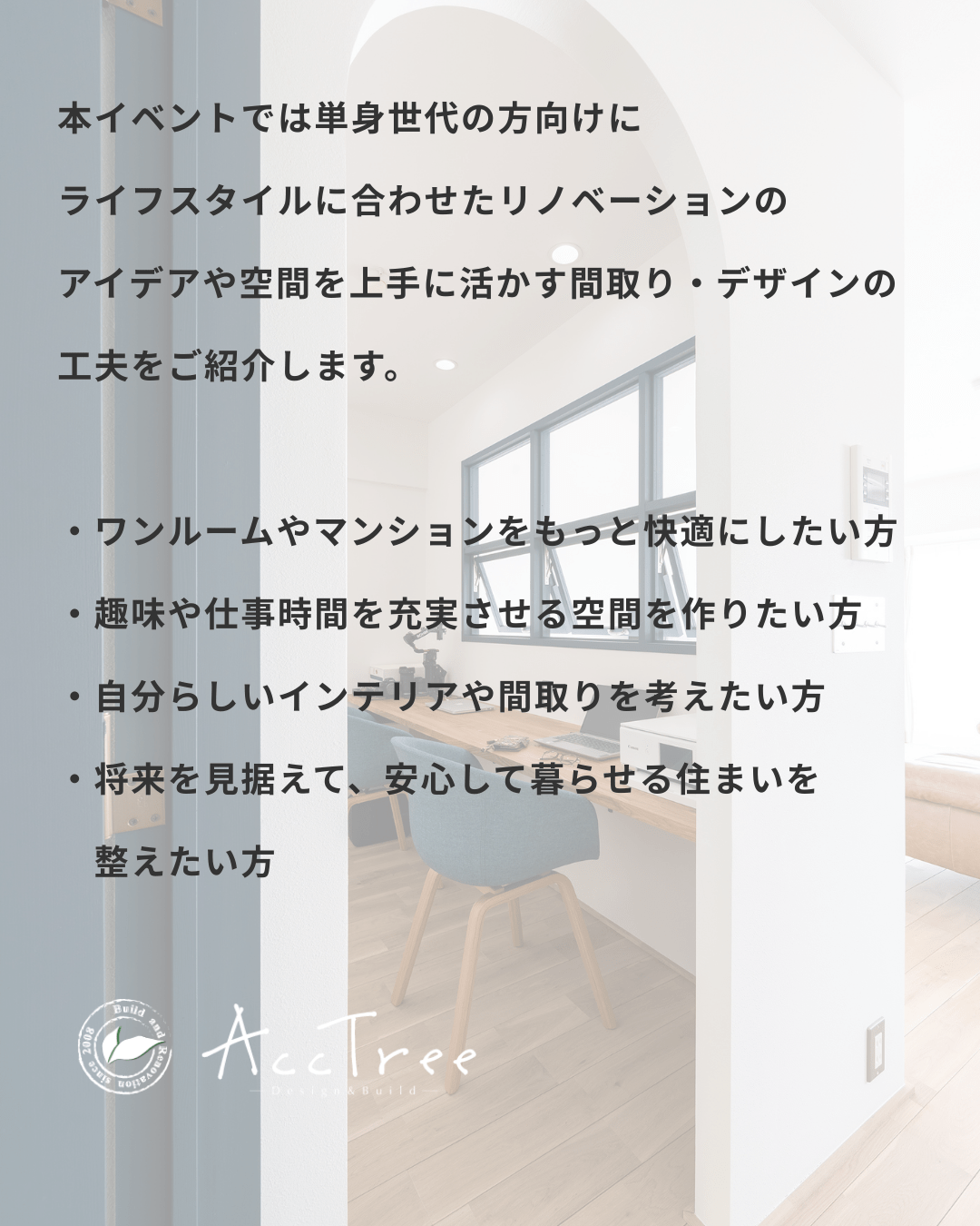 本相談会は、単身世代の方を対象にしたリノベーションの無料個別相談会です。