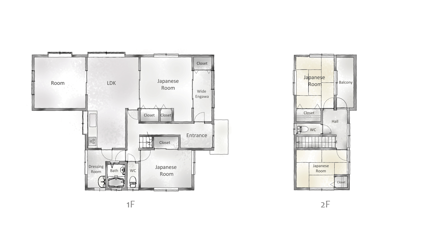 2階は大きな間取り変更はせず、和室を洋室に改装しています。