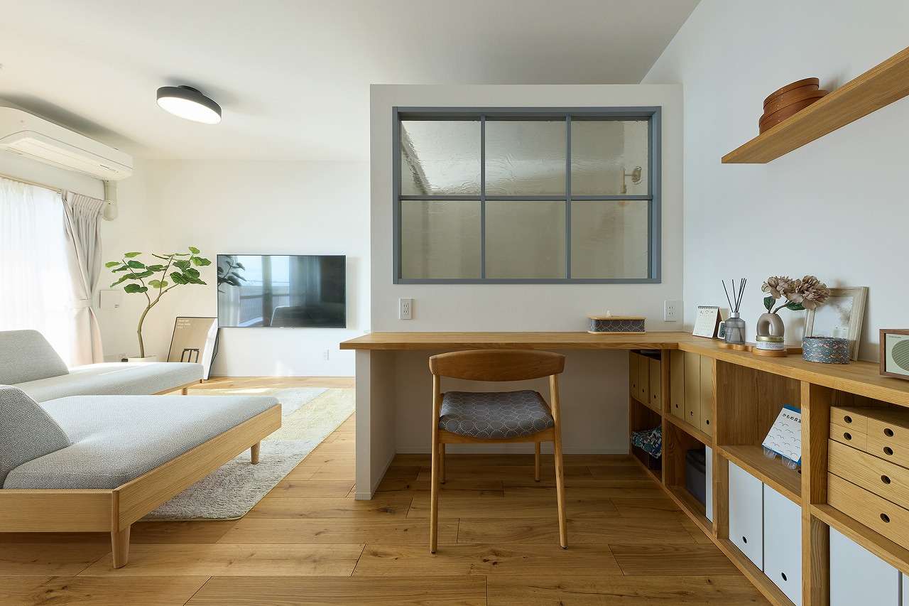 また、閉鎖的だったキッチンまわりは壁を取り払い、視線が抜ける開放的なLDKに。