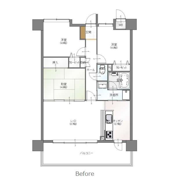 約70㎡の3LDKを、3LDK+ウォークインクローゼットへと間取りを見直しました。